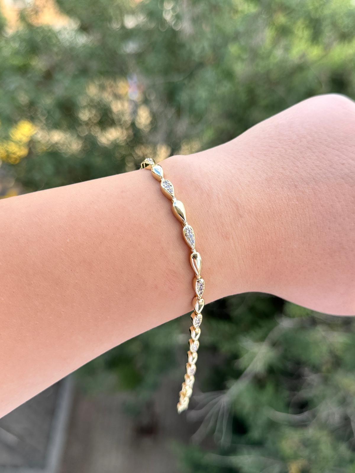 Zarifliği ve şıklığı bir arada sunan Xuping marka 14K altın kaplama bileklik, kararma yapmaz özelliğiyle uzun süre ışıltısını korur. Kalp formuna yakın modern tasarımı ve parlayan taş detaylarıyla bileğinizde göz alıcı bir duruş sergiler. Hem günlük kombinlerinizde hem de özel davetlerde stilinize zarafet katar.