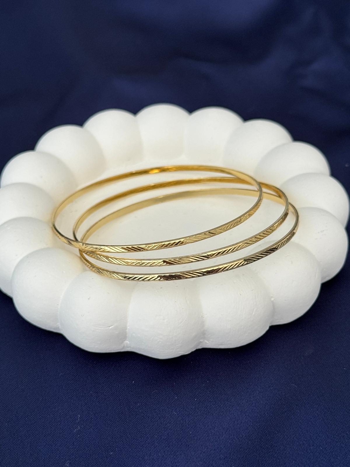 🌟 3’lü İnce Altın Kaplama Desenli Bilezik Seti 🌟
