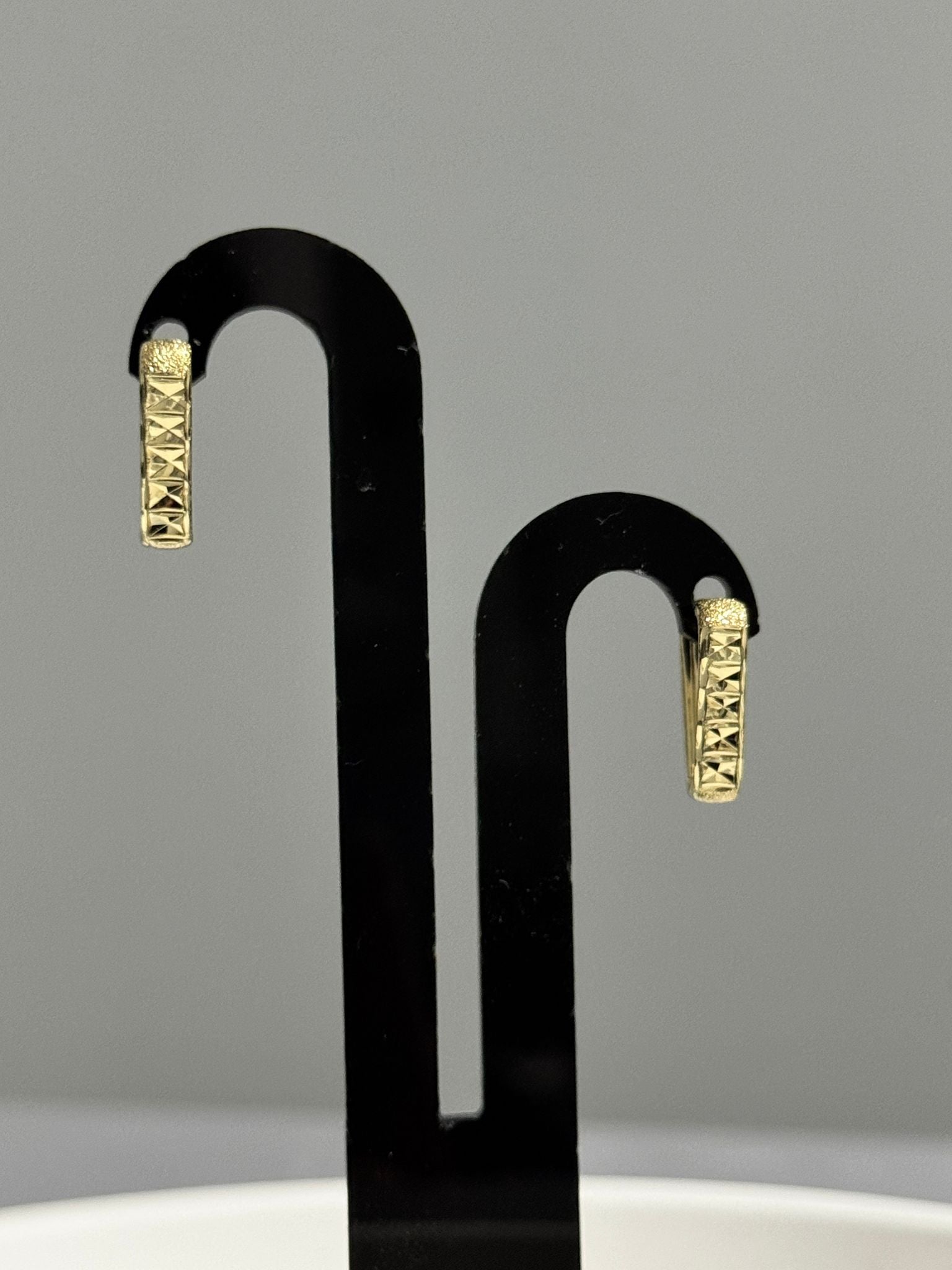 Zarif ve modern tasarımıyla günlük kullanıma uygun olan bu altın kaplama küpe, geometrik desenleri sayesinde ışığı farklı açılardan yansıtarak şıklığınızı ön plana çıkarır.