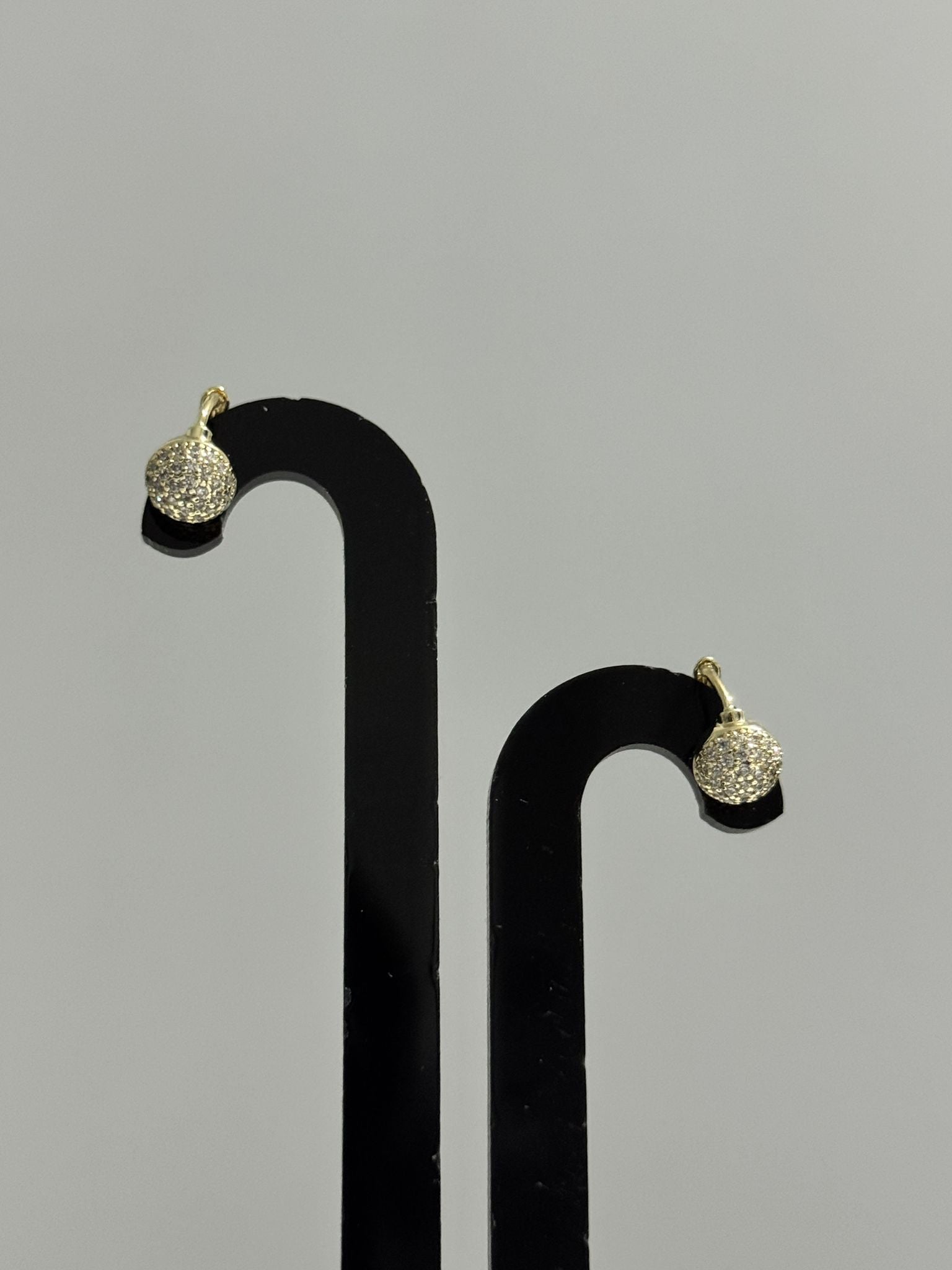 Yuvarlak formu ve tamamen taşlarla kaplı ışıltılı yüzeyiyle bu zarif küpe, her ortamda parlamanızı sağlar. Günlük şıklığınıza modern bir dokunuş katarken, özel davetlerde de sofistike bir görünüm sunar.