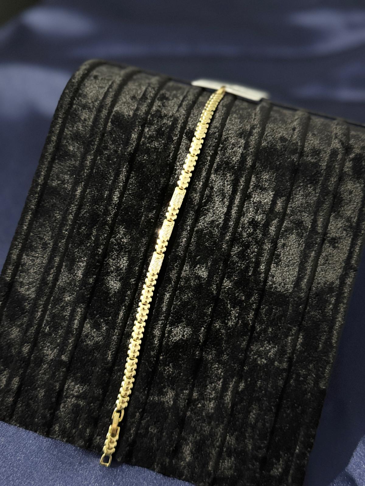 Modern tasarımı ve pırlanta taşlarla süslenmiş zarif detaylarıyla bu bileklik, hem günlük kombinlerinizde hem de özel davetlerde stilinize ışıltı katar.