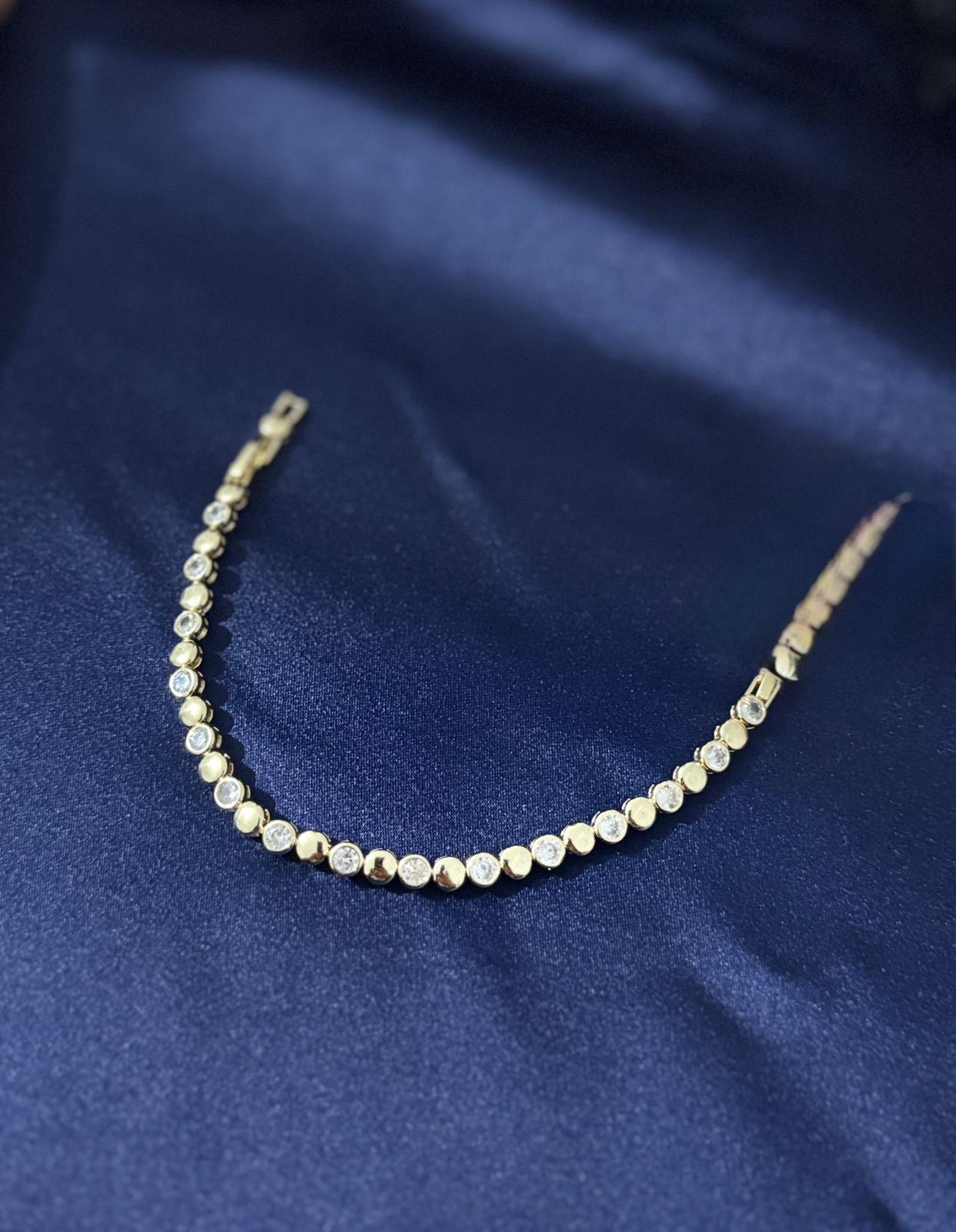 Zarif yuvarlak taşların kusursuz uyumuyla tasarlanan bu bileklik, minimal şıklığı ve göz alıcı parlaklığı bir araya getiriyor.
