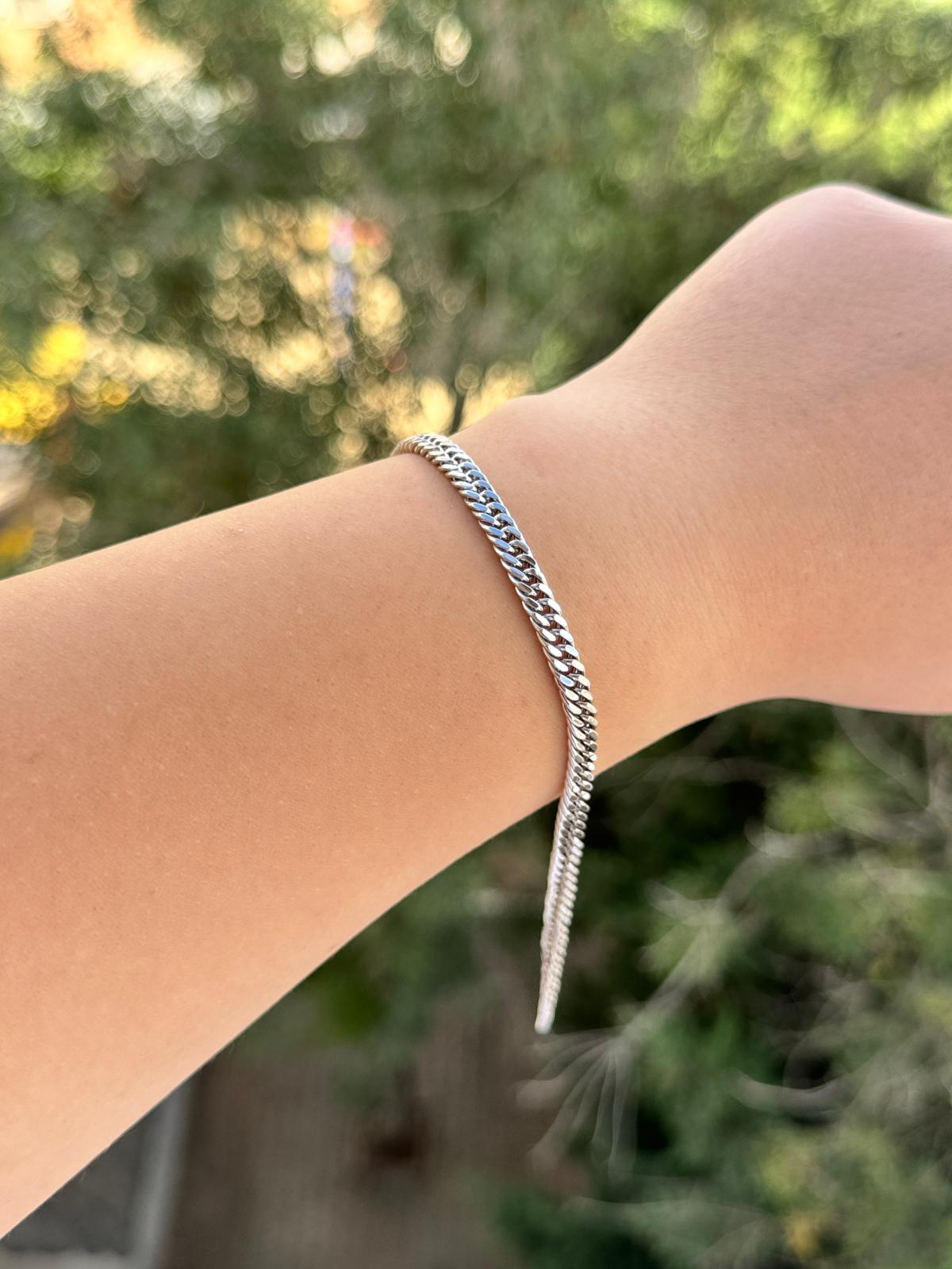 Zamansız bir şıklık arayanların tercihi! Klasik zincir formuyla tasarlanan bu zarif bileklik, sade ve modern görünümüyle her stile uyum sağlar. Parlak yüzeyiyle günlük kombinlerde minimal bir şıklık sunarken, özel davetlerde de zarif bir tamamlayıcı olarak öne çıkar.